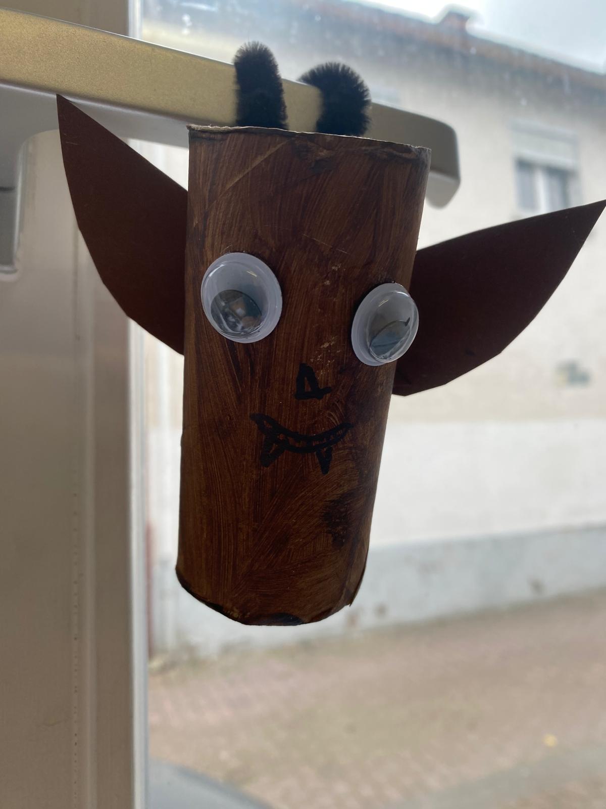 Für den Mittwoch stand ein Tier auf dem Programm, das man in Höhlen findet, nicht nur im Wald, aber auch da. Die Fledermaus, sie passt ja gleichzeitig auch zum nahen Halloween. Aus Klorollen, Pappe, Pfeifenreinigern und den unverzichtbaren Wackelaugen kamen die lustigsten (oder nach Wunsch auch gruseligsten) Flattermänner zustande.